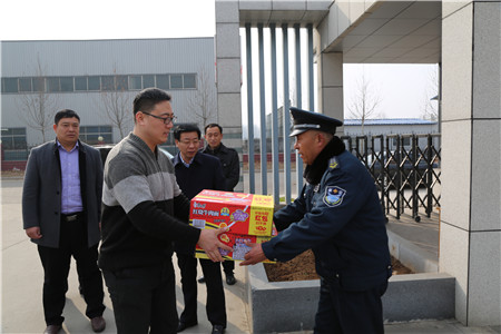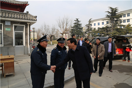 1月26日,春節(jié)來臨之際,受董事長、總裁荀金慶委托,集團常務副總裁楊中河、黨總支副書記李曉虎、副總裁姚彥偉、工會主席孫凡華、總裁助理孔令東、仙文等集團領導一行分別到報警公司、曲阜分公司、犬業(yè)公司、濟寧分公司慰問春節(jié)期間工作在一線的保安員工。