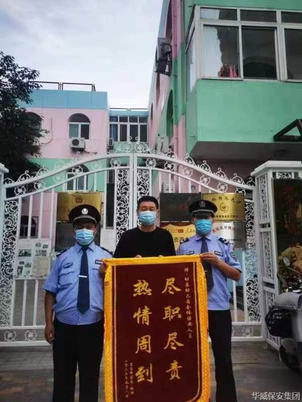 近日,北京分公司駐幼辰幼兒園項目部學生家長為該項目部保安隊員宋懷偉、孟慶淼同志送上一面錦旗,以此表達對學校安保工作的肯定和對華威保安隊伍的感激之情。學生家長動情...